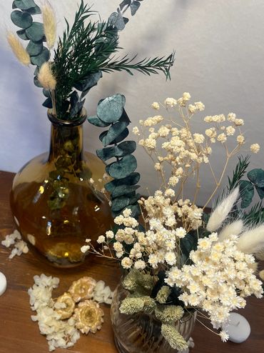 Enjoy the timeless elegance of a classic bouquet while supporting sustainable decor. Our dried flower arrangements are completely customizable and offer a beautiful, eco-friendly alternative to traditional florals. Best of all, these blooms live on—long after the 'I do's,' you and your guests can repurpose them into meaningful crafts and keepsakes that carry the memory of your wedding forward.