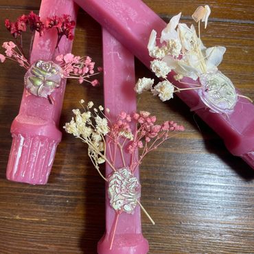 Customizable candles that light up your wedding as stunning centerpieces and cherished favors.